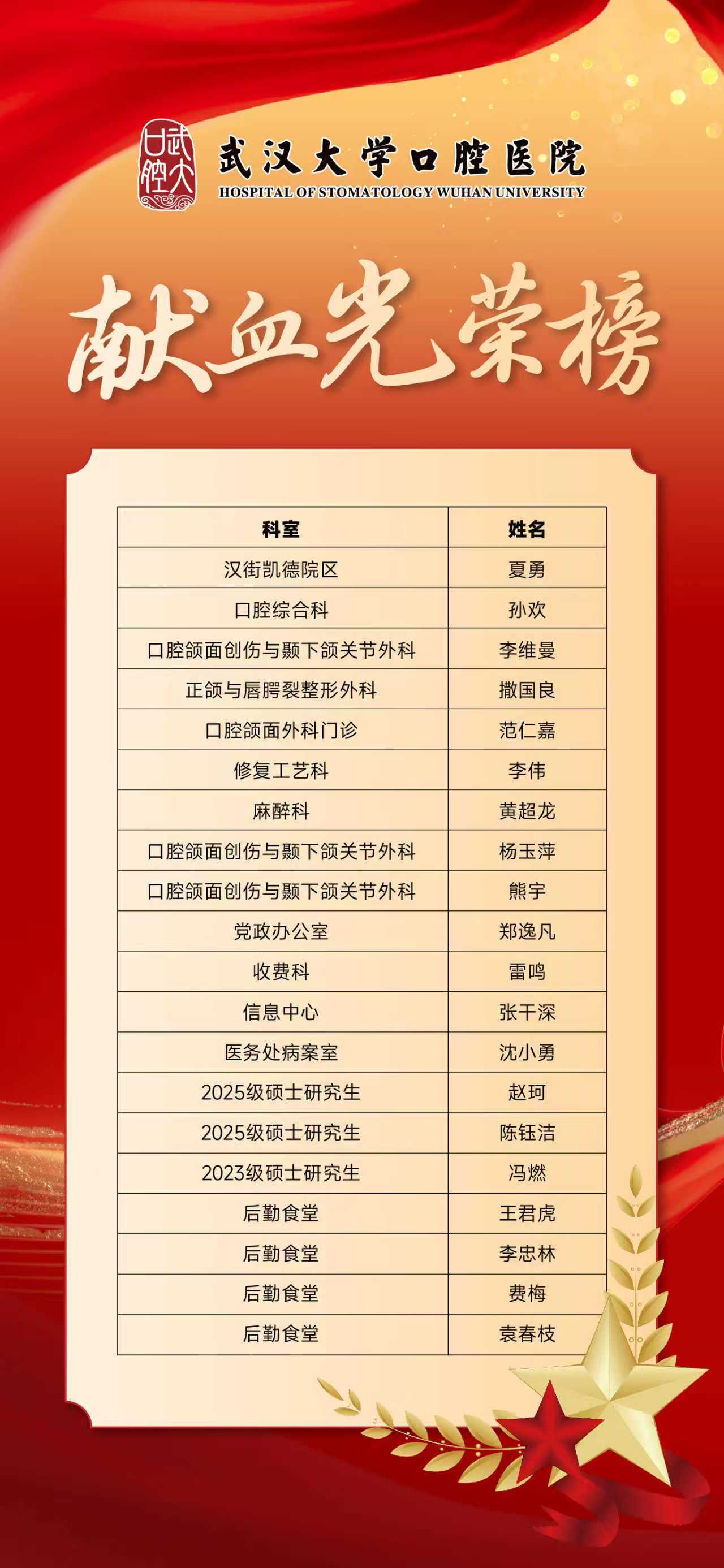 这些带着温度的血液,不仅为临床急救提供了宝贵的血液资源,更彰显了武汉大学口腔医院医务人员“敬佑生命、救死扶伤、甘于奉献、大爱无疆”的职业精神。