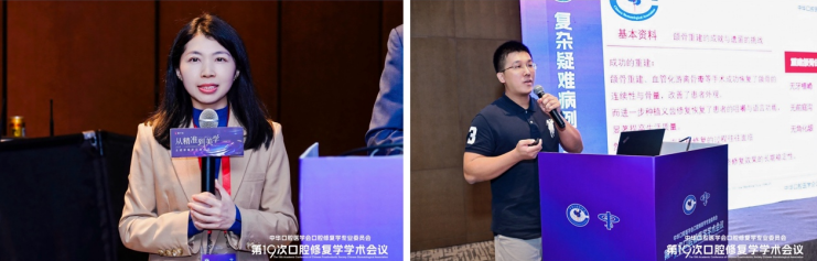 梁珊珊主任医师在“临床新技术”专场,分享了《口腔美学修复中医技协同的临床实践》,精彩阐述了如何通过高效的医技沟通实现卓越美学效果;朱肖副主任医师在“复杂疑难病例展示”板块分享了一例上颌重度骨缺损腓骨重建患者缺牙区的“造嵴之旅””,引发现场观众热烈讨论;金春晓博士在博士生论文交流环节进行了精彩发言。此外,多位专家还受邀担任相关专场的主持工作,深度参与了会议的组织与交流。