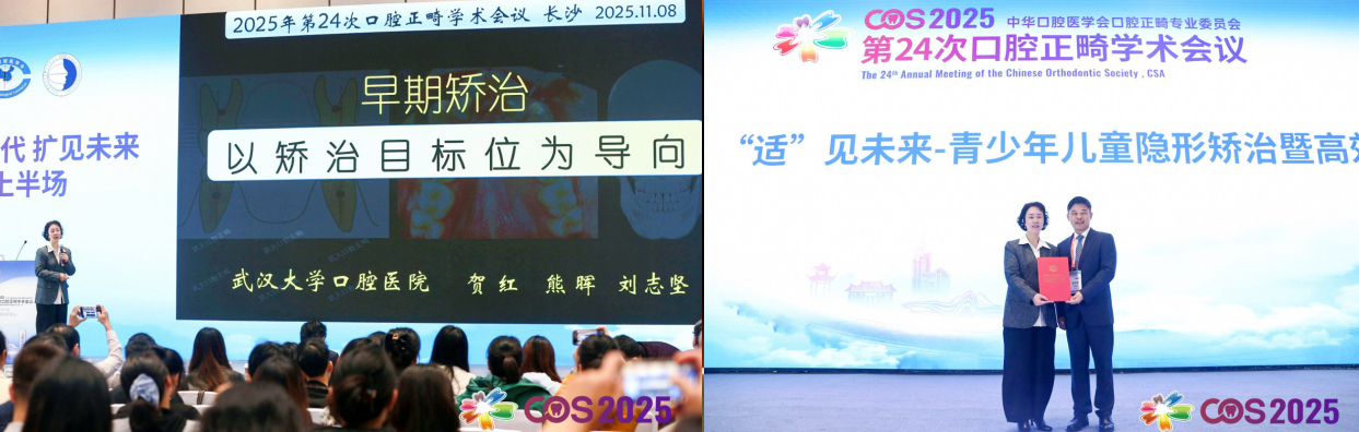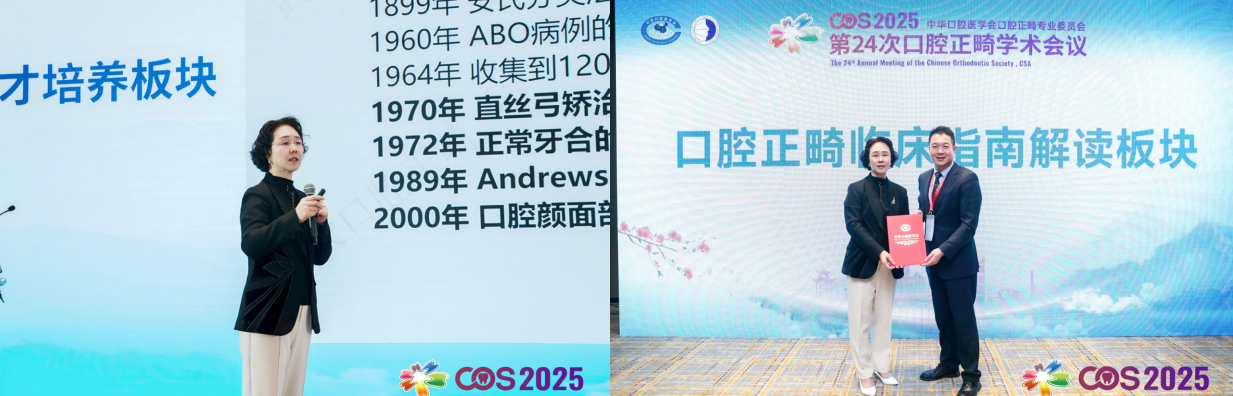 11月7日上午,贺红教授受邀在两大核心版块进行分享:在正畸教学与人才培养版块,她以《丝丝入扣:弓丝弯制的培训思路与感想》分享我院正畸教学经验,通过“理论+实操”双轨培训模式的案例展示,引发青年医师强烈共鸣;在口腔正畸临床指南解读版块,探讨了《从矫治目标出发探讨早期矫治的适应证》专题,内容直击临床热点,得到与会者一致好评。下午,贺红教授作为点评专家,对国内13所院校研究生的临床病例进行深度点评。