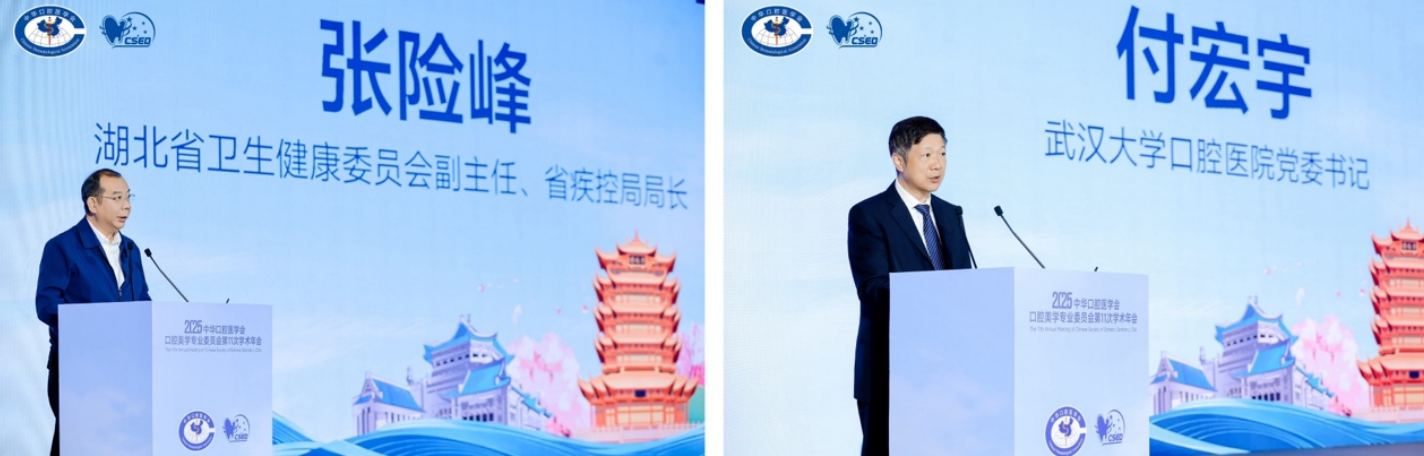 开幕式上,湖北省卫生健康委员会副主任张险峰、武汉大学口腔医院党委书记付宏宇分别为大会致辞,对本次年会的胜利召开表示热烈的祝贺,对远道而来的各位嘉宾表示诚挚的欢迎。