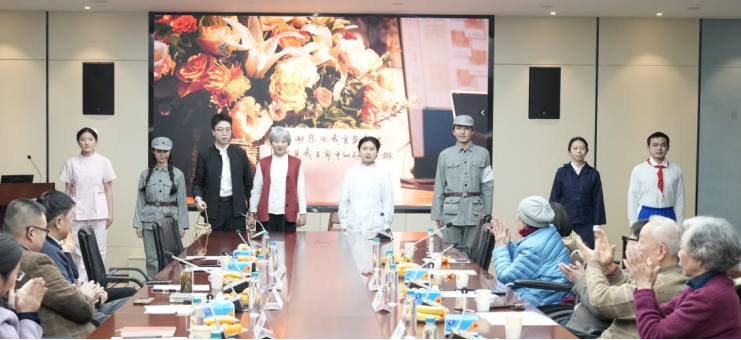 在捐赠仪式的最后,由我院师生展演了原创思政舞台剧《医者仁心,烽火传承》。该剧由武汉大学口腔医学院胡涵情、凌晨、孟柳燕老师指导,硕士研究生盛洁、林陈心子、孟昱成、祝铮锐、颜益民、黎绮雯、潘世娇、陈晴主演,以湖北医学院附属口腔医院(今武汉大学口腔医院)第一任支部书记——王益才同志的真实事迹为原型,通过四幕感人至深的故事,展现了老一辈医者坚守初心、无私奉献的精神,以及新时代口腔医学工作者的使命与担当。