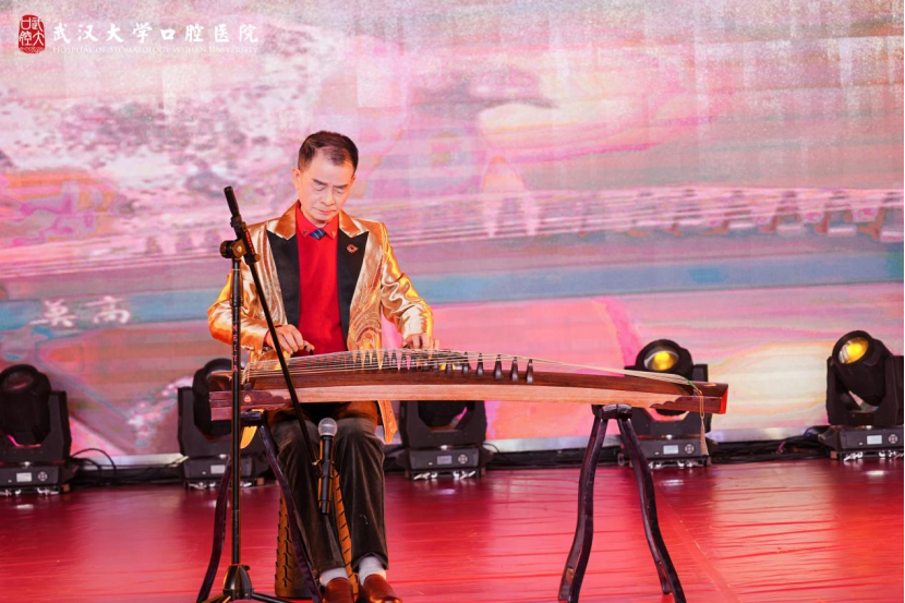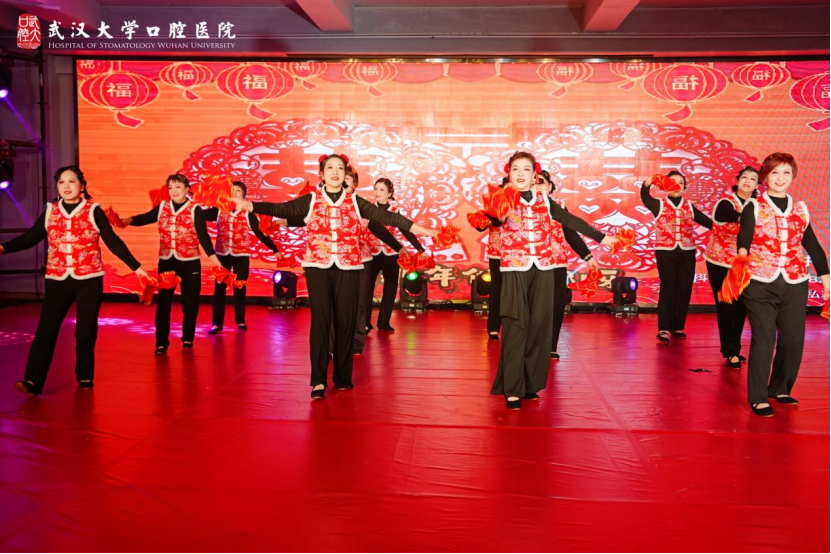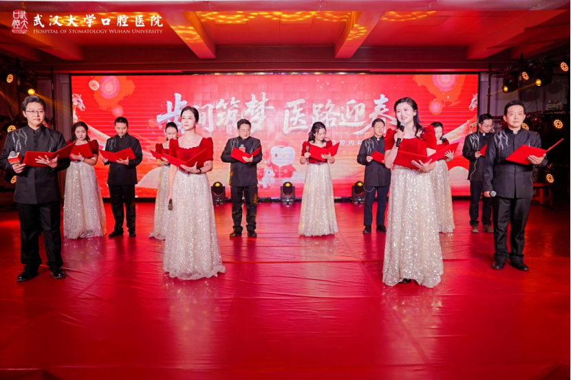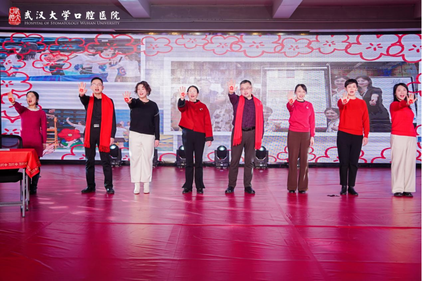 院外门诊党总支率先带来大合唱《我的祖国》,歌声嘹亮、气势恢宏,充分展现了武大口腔人的家国情怀。